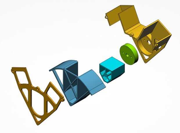 Puesto que mis canicas eran 14,25 mm de diámetro que sabía que el pistón tendría que viajar mucho para poder bajar el mármol y tener espacio libre. Eso condujo a la cam (la parte circular del motor y el pistón) que necesitan un radio 7.125 para mover el pistón esa distancia. Tener el tamaño de la cam descubrió era capaz de girar para encontrar la distancia más lejos que el pistón viajaría a la izquierda y derecha. Que medida me dio los ángulos necesarios para agregar los ejes de entrada y salida en los lugares correctos. Con esas medidas figuradas el resto del diseño sólo cayó en su lugar y completé el modelo mediante la deformación de los tamaños de las piezas móviles para darles .2mm separación entre sí. Después de media docena de prueba impresiones y refinamientos Finalmente conseguí esta versión trabajo y presentable.