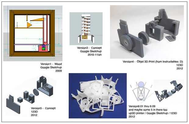 Me llevó varios prototipos impresos madera y 3D para llegar a este punto, cada uno había eliminado un problema desde el diseño pasado antes de él y finalmente funcionó hacia fuera cosas a ir mal. Para empezar fui a woodgears.ca y miraba y miraba los ejemplos en esta página hasta que el concepto finalmente se filtró en mi cabeza lo suficiente para mí empezar a diseñar. Puesto que había no hay dimensiones que necesitaba para empezar de cero; He pedido un pequeño cubo de mármoles y utiliza su tamaño como base para el resto del diseño.