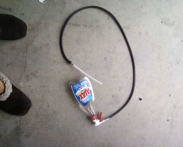 para hacerlo necesita es un embalaje de limpiavidrios y una presión de la manguera del rociador.