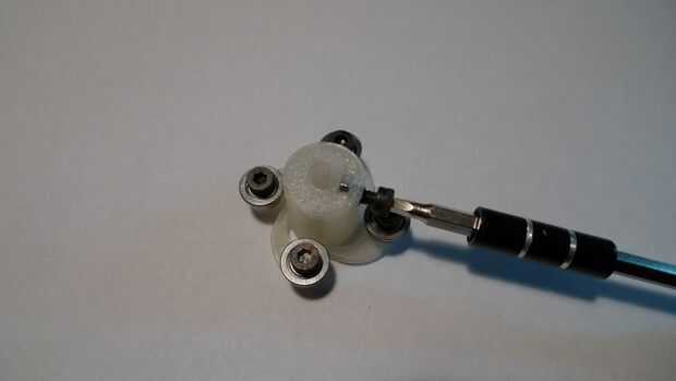 Inserte el tornillo de fijación parcialmente. Se necesita espacio para el eje motor más adelante.