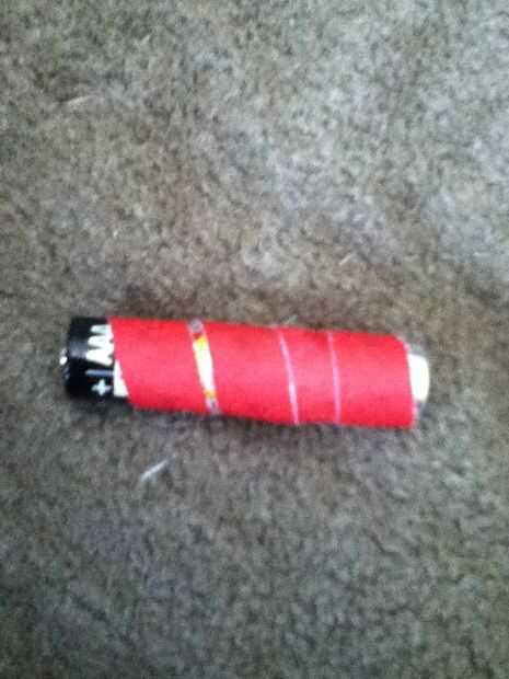 Rip algunos de los casquillos para que berfectly en el battery.then tomar algún pegamento y el lugar en el battery.then rap las tapas alrededor de la batería y deje que el pegamento seca. Cuando el pegamento esté seco se puede utilizar.