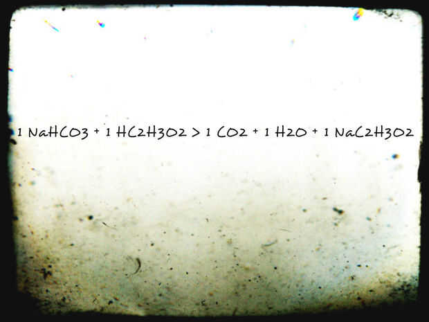 1 NaHCO3 + 1 HC2H3O2 → 1 CO2 + 1 H2O + 1 NaC2H3O2