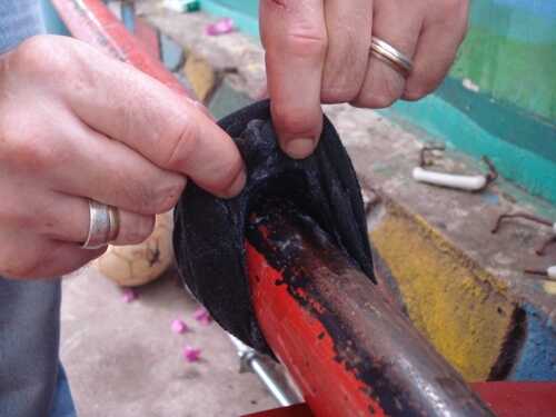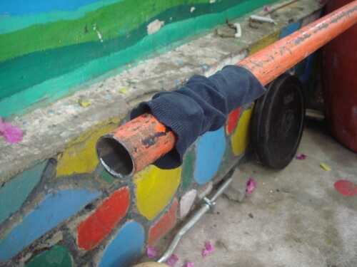 Pivote barra arbustos - tomar varios calcetines viejos y cortar los dedos del pie, pásalos a la barra y doblar sobre sí mismos, una almohadilla de material de construcción.