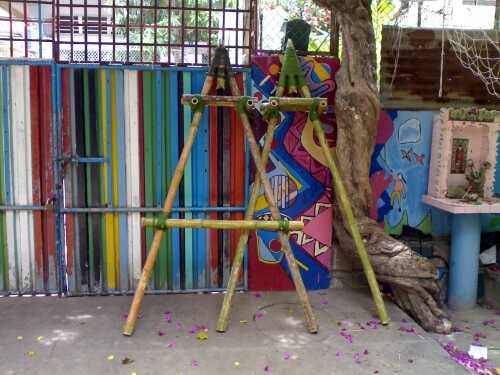Os adjunto un corto, brazo del oscilación de 12" de bambú a la barra de pivote y y el swing de allí con muy poco esfuerzo.