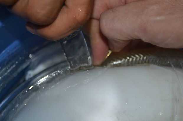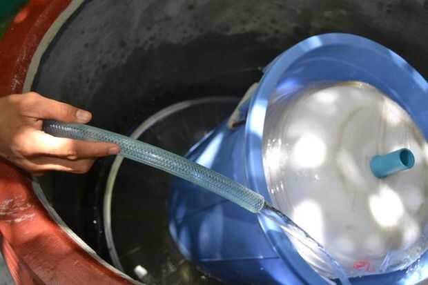 Fije la articulación giratoria y manguera conduce a su colección y cuchara de medición y asegúrese de que el extremo abierto de la manguera puede capturar alrededor de 50% aire y 50% de agua con cada vuelta y girar el cubo en la dirección correcta. Ahora debe funcionar la bomba.