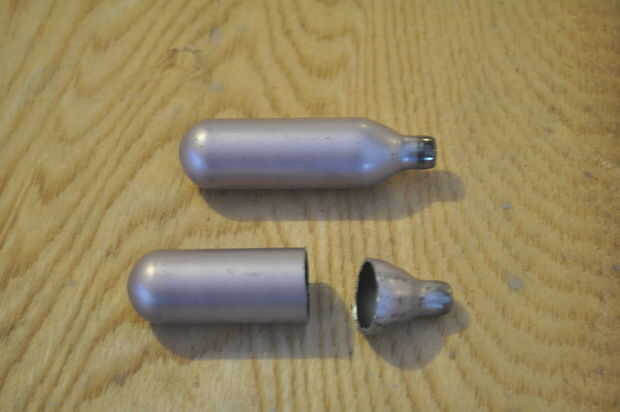 El primer paso es tomar el CO2 bombona y corte de la parte superior justo después de la curva.
