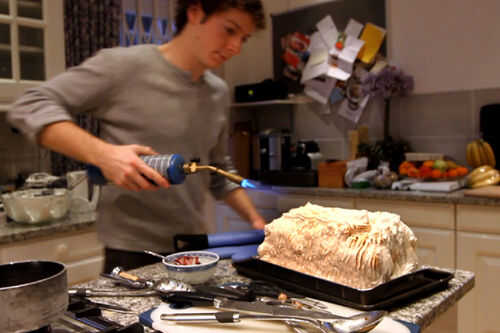 Retire el postre del horno y dórelas artísticamente con un soplete.