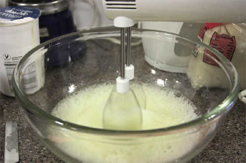Continuar a batir el merengue hasta que esté espesa y brillante.