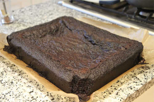 Esta receta es para que un pastel de chocolate espeso y húmedo proporcionar el aislamiento de la base de su postre. La Guinness agrega un elemento extra de Malta riqueza, pero no es tastable como cerveza en el postre terminado. Las cantidades a continuación llenará una bandeja de brownie grande (30 x 45 cm) con la torta, pero el postre terminado sólo requerirá un trozo de 25 cm x 10 cm de esta. Me temo que va ser sobrado con mucha torta. Sólo espero que pueda encontrar una manera de gestionar este excedente lamentable.