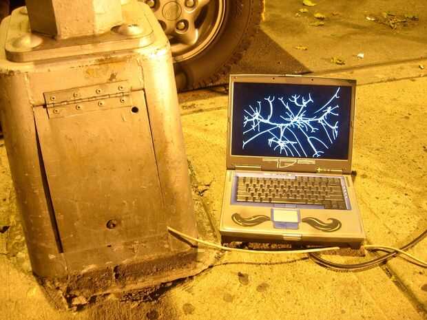 Una de las maneras más fáciles de alimentar un sistema de proyección en la ciudad es proporcionada por la propia ciudad. Esto es inherentemente peligroso y libre, por lo que tratamos de hacerlo siempre que sea posible. Pero cuidado: personas y animales domésticos han sido electrocutados antes en Nueva York a tocar farolas, así que tenga mucho cuidado cuando pensando en llegar en su interior. ¡Buena suerte!