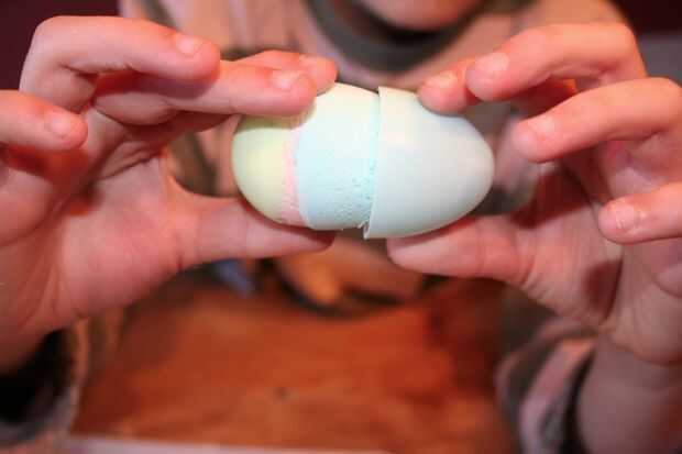 Después de dos horas han pasado, puede comenzar a abrir los huevos. Tener cuidado y tomar un lado en un momento. Si el huevo no sale fácilmente, sólo menear abrirla con un cuchillo de mantequilla.