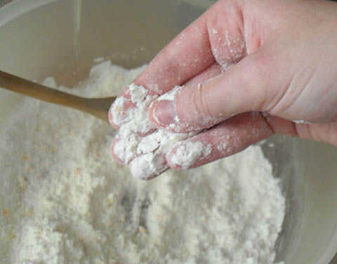 Usted encontrará que sus líquidos forman pequeños grupos y no mezclan inmediatamente con el polvo. Mantener en ella! Utilice el utensilio para romper los bloques en trozos más pequeños y más pequeños. Mantener revolviendo para distribuir la humedad a lo largo. Puede ser útil para romper los grumos más grandes con los dedos. Solo tener cuidado con lo grumos de colorante. Si los rompes abierta con los dedos puede tener coloración suave.