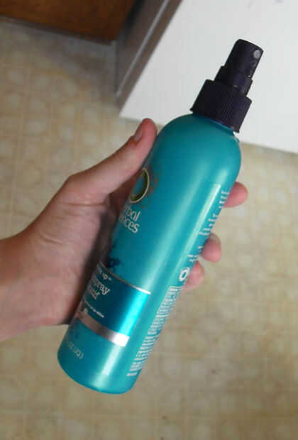 La mezcla en el recipiente de la niebla--hacer pulverizaciones 2-3, luego revuelva con los dedos. 2-3 pulverizaciones más, pelusa otra vez.