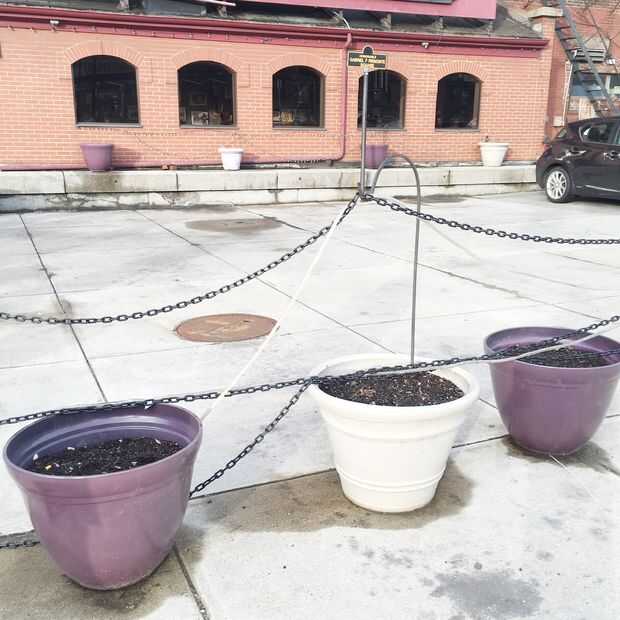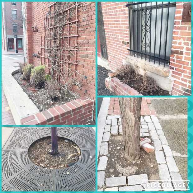 Lugares de jardinería de guerrilla popular incluyen: escuelas, parques infantiles, hoyos de árboles, jardineras públicas desatendidas. Las fotos de arriba fueron tomadas en North End de Boston justas antes de que recibimos innecesario nieve de abril.
