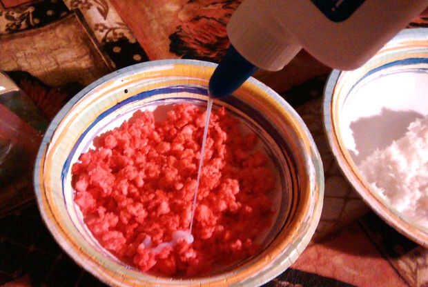 Luego añadir poco de pegamento. No necesita mucho. Desea algo para unir el papel una vez que se seque. Pegamento PVA es soluble en agua, pero creo que menos es más, porque no quieres a abeja demasiado difícil para las semillas a crecer de una vez lanzarlas fuera.