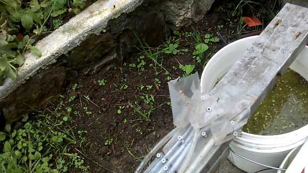 cómo hacer un sistema de riego para "jardines de la plataforma" que es impulsado por una bomba de acuario burbuja.  Aproximadamente 20 litros por hora de aire es necesario para cada avión de transporte.   Bombas de burbujas parecen comenzar en c