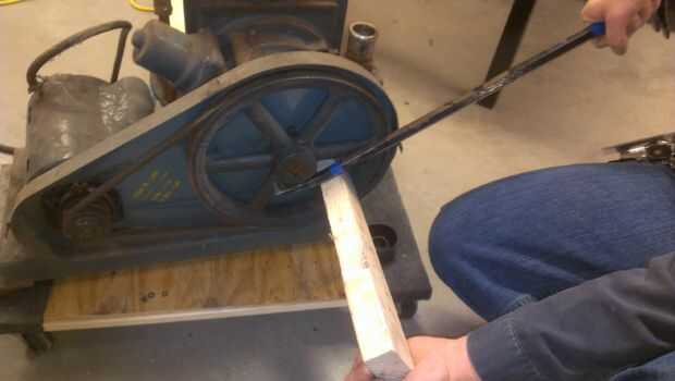 Las paletas fueron oxidadas a las paredes del interior cilindros. Usando una palanca y un 2 x 4 que fue reducido a un 2 x 2, fue posible conseguir las paletas de gratis y con éxito, gire el volante grande.