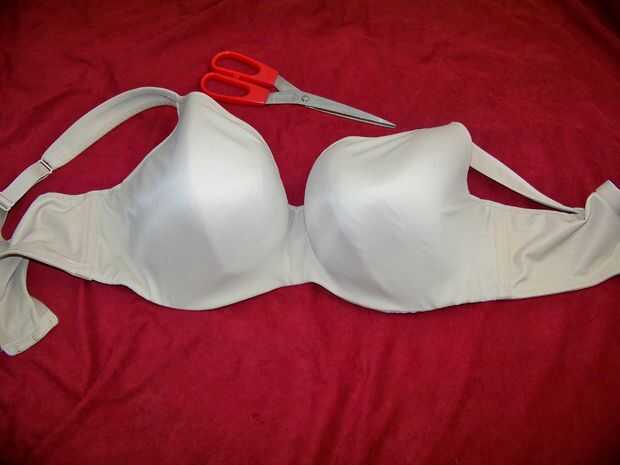 Comprar o encontrar un brasier de cobertura total con tazas formadas. Básicamente, lo que quieres es algo con la empresa, copas de espuma con una capa de tela sobre los. Un montón de 'bras de la camiseta' funcionaría, y un recubrimiento del cordón sería bueno, también. Es sólo importante que haya dos capas y la parte inferior uno necesita algunos de la estructura. Encontrar algunas tijeras, también.