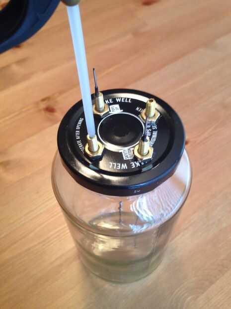 Sin dejar de soplar el CO2 en la jarra, atornille una tuerca en el respiradero abierto.