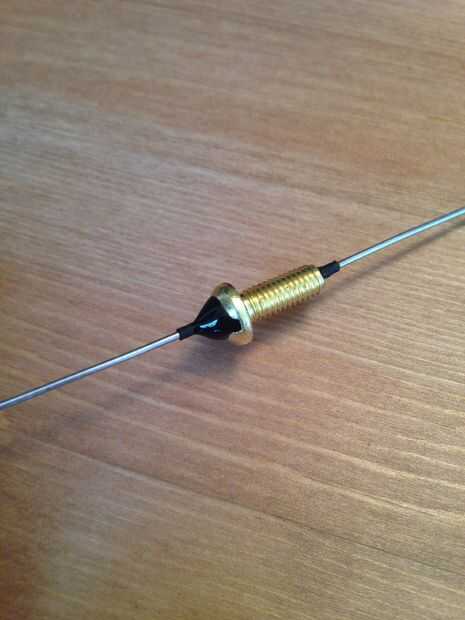 Con la cabeza hacia abajo, con cuidado coloque el tornillo en el tubo y JB Weld. El epóxico debe llenar el agujero en el tornillo ya que esto debe ser un sello hermético. También asegúrese de que el tornillo esté directamente en el gancho de alambre.