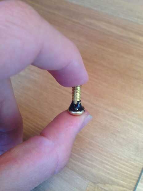 Mezclar una pequeña cantidad de JB Weld y aplique a la parte inferior de la cabeza del tornillo.
