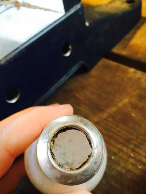Entonces deberás salir todos los trastos de la media. Utilice elegir para romper aparte el elemento interior y luego escariar el agujero.