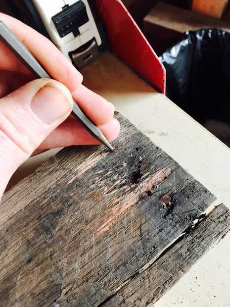 Primero quité todas las uñas para que me lo podría enviar a través de la cepilladora. Yo uso un pequeño punzón a golpear los clavos hacia fuera. Luego agarrar la cabeza del clavo con un martillo y tirar hacia fuera.