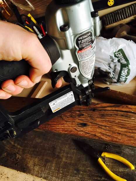 Cuando las juntas están listas, usé a una clavadora para asegurar las piezas juntos.