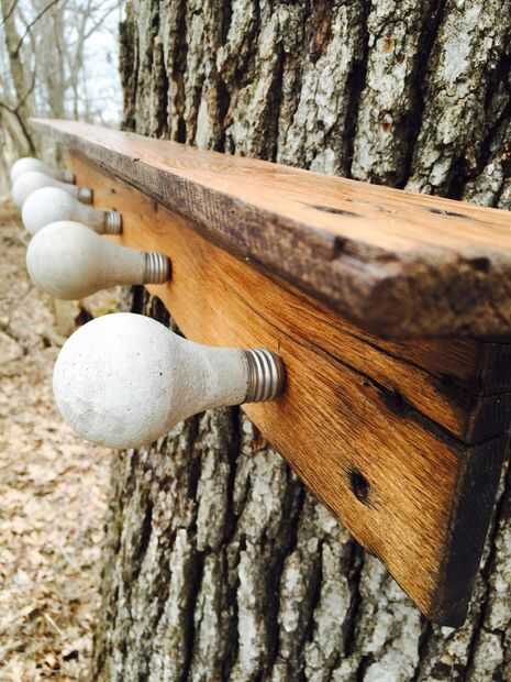 Bombilla Coat Rack con madera recuperada de concreto (8 / 8 paso)