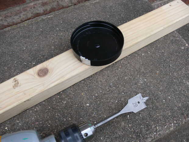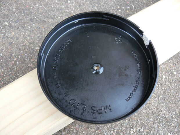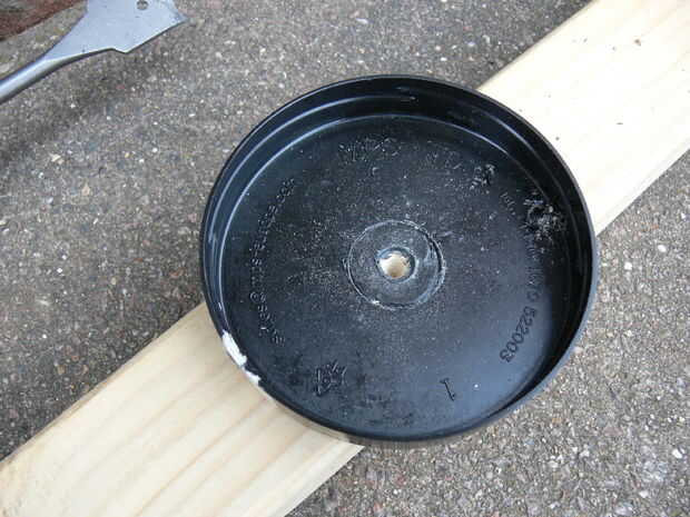 En primer lugar, haga un orificio piloto en el centro para guiar el cortador del agujero en lugar de tener que moverse alrededor de la tapa mientras que intenta forzar el punto a través. Cuidado, plástico morder tan pronto como el taladro se consigue a través de ti *, así entrar lentamente y estar listo para retirarse. No presione demasiado duro y utilizar una velocidad lenta del taladro. Entrar en él como esta hasta que has marcado un círculo en el plástico.