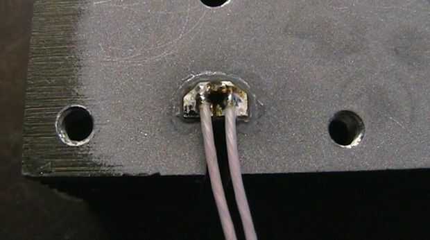 Sensor de temperatura (NTC tipo 0603 SMD tamaño) se fija en la placa de mica de grueso 0,2 mm con la gota de pegamento. El aislamiento fiable aquí es el punto VITAL para el ventilador de ' circuito de alimentación no está aislado galvánicamente de alto voltaje de línea de CA.
