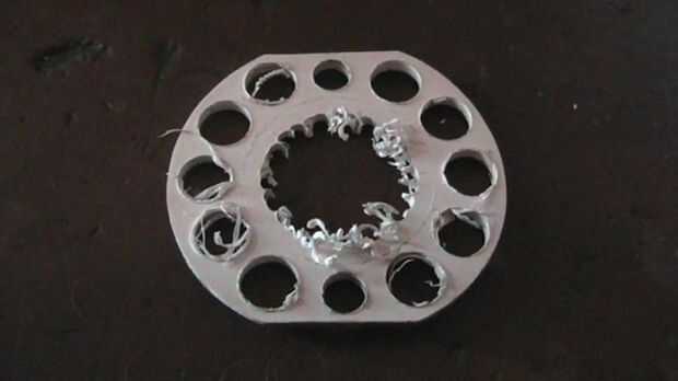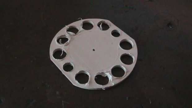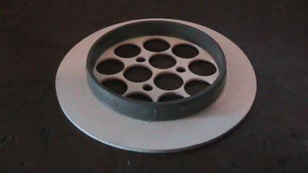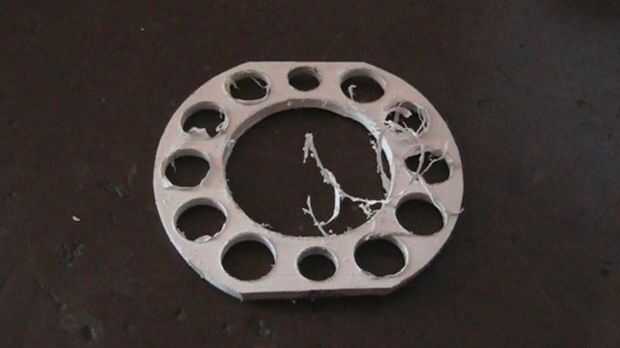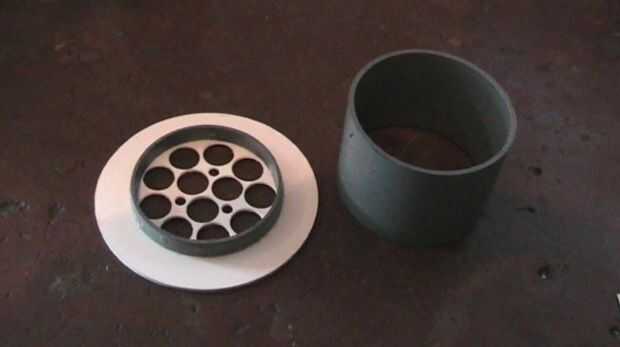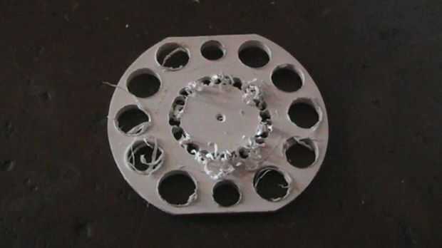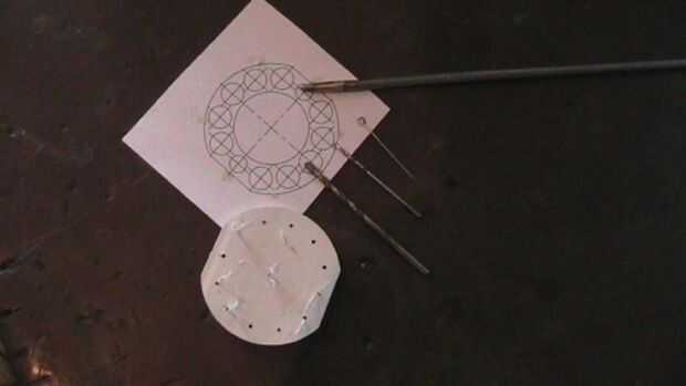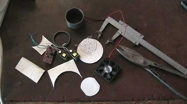 Anillo interno de la unidad de iluminación está formada por la misma pieza de tubería de aguas residuales. Pequeñas protuberancias a lo largo de la superficie cilíndrica del anillo son el pegamento endurecido ' s gotas; ayudan a fíjela plug de la unidad de iluminación insertada en la carcasa de la bombilla. Arandela perforada de plástico está hecho de conducto de ventilación rectangular de PVC nacional con la ayuda de tijeras de metal y taladro. Socket E27 está tomado de quema incandescente.