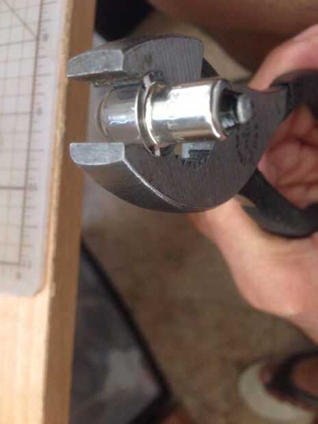 1. usando las pinzas, crack/rotura de la parte de cristal de la bombilla (apuntando hacia el tacho de basura) y limpiar todo el interior del bulbo.