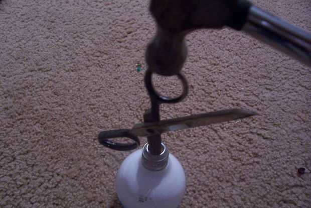 Después de haber eliminado todo el vidrio negro, mira en el vástago de su bombilla. Podrás ver dos cosas. Un tubo largo delgado y vidrio que cubre el tallo. Punto la madre lejos de usted y suavemente, con las tijeras destornillador/flaco, romperlo. Presurizado y, en ocasiones envía un fragmento de vuelo. a continuación, puede insertar la punta de la herramienta y dar un suave golpe con el martillo para romper el vidrio que sella el foco.