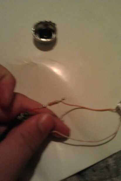 Tira tu cable usb y un cable de la resistencia en los cables positivos cable (normalmente rojo) luego el otro extremo del resistor al positivo del led de la soldadura de la soldadura. luego suelde los negativos juntos. aislar y continuar.