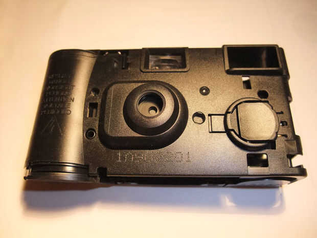 Después de quitar el papel se encuentra una cámara de plástico sin ningún tornillo.
