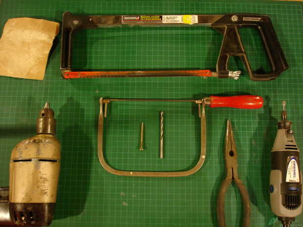 -las herramientas básicas: Sierra, taladro, Dremel, alicates.