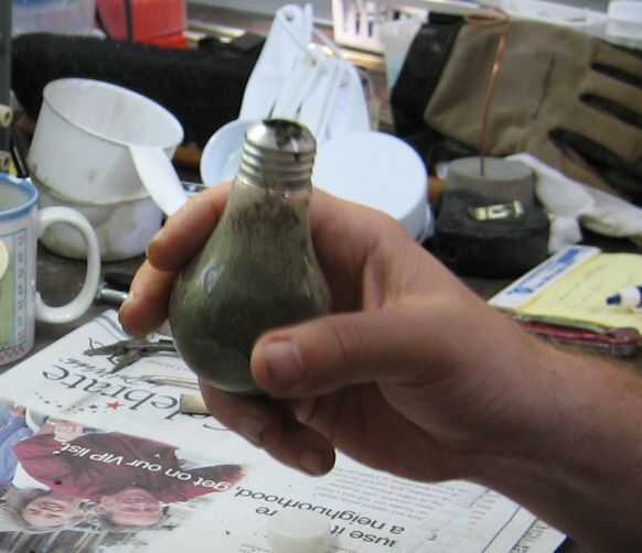 Hacer estos pasos, un puñado de bolas mucho temblor y taping para llenar los vacíos y hacerlo todo líquido como hasta llegar a mitad de camino hasta el cuello de la bombilla. En ese momento es hora de agregar el perno de retraso.