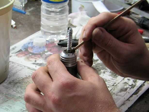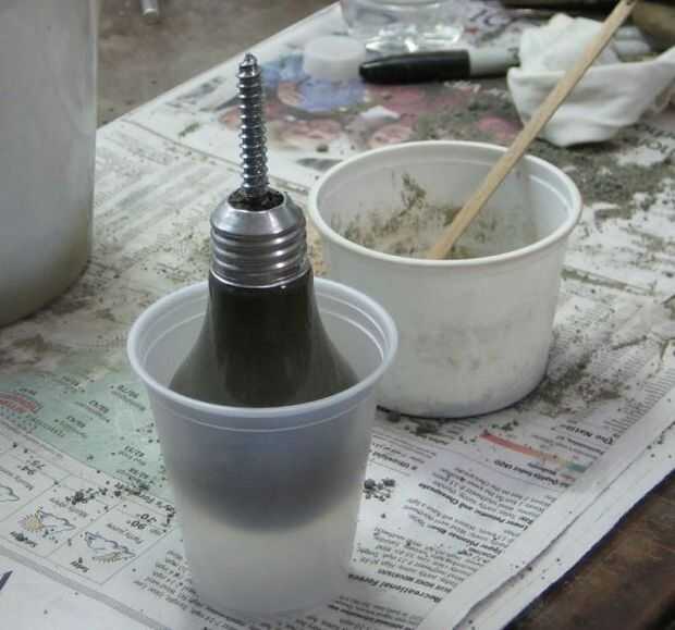 Cuando todo termine, poner la bombilla con el perno de retraso hacia arriba en un vaso de plástico de repuesto. El que usé cuando también prestado de Starbucks. Tomar un trapo y limpiar el metal de la parte roscada de la bombilla, así que se puede, no desea que la mezcla de mortero de secado en él.