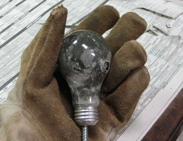 Esta es la parte donde están rompiendo el vidrio de la bombilla en pequeños pedazos a propósito.