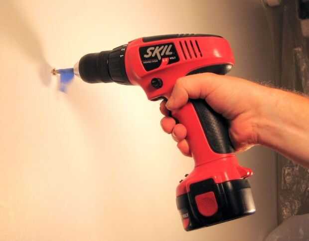 2) Perfore el orificio. Con una 1/4 broca, perfore un orificio de 1.5" en la pared.