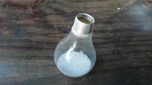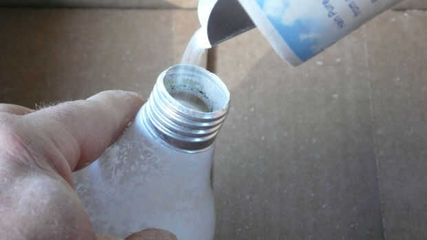 Salvo que esté usando un bulbo claro necesita limpiar el revestimiento en el interior superficie. Vierta la sal en el bulbo y agítelo todo hasta todo el revestimiento es de la bombilla. Esto es realmente fácil de hacer. Volcar la sal a la basura y lavar la bombilla. Otra vez estas bombillas son muy frágiles así que ten cuidado.