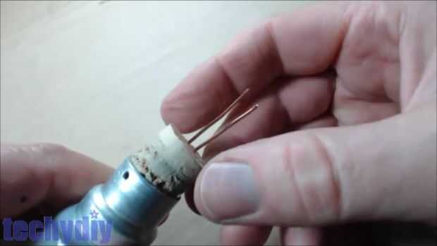 La base de la bombilla de luz se hace de un corcho que se ajusta firmemente en el bulbo.