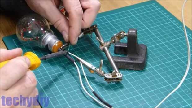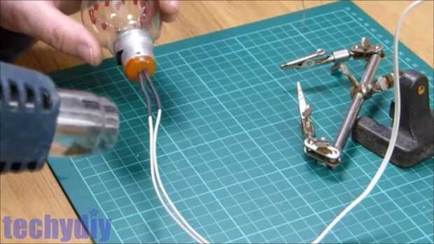 - Utilizar la mano para estabilizar el foco y y también para actuar como un disipador de calor del lado de la bombilla los cables rígidos.