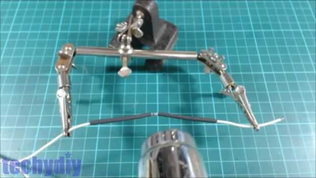 - Coloque el tubo termo retráctil sobre ambos cables.
