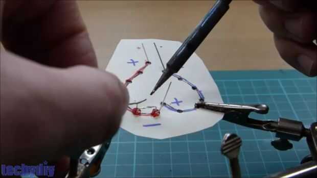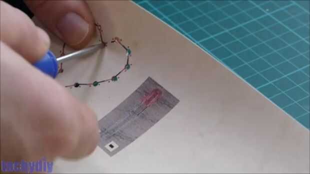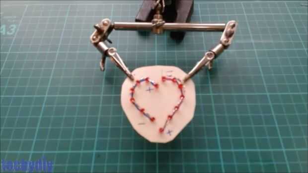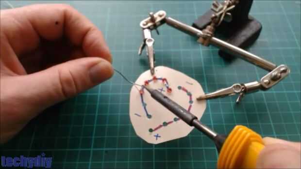 El corazón led está formado por soldar los leds en serie. El corazón se hace en dos secciones y las secciones se unen posteriormente para formar la forma del corazón.