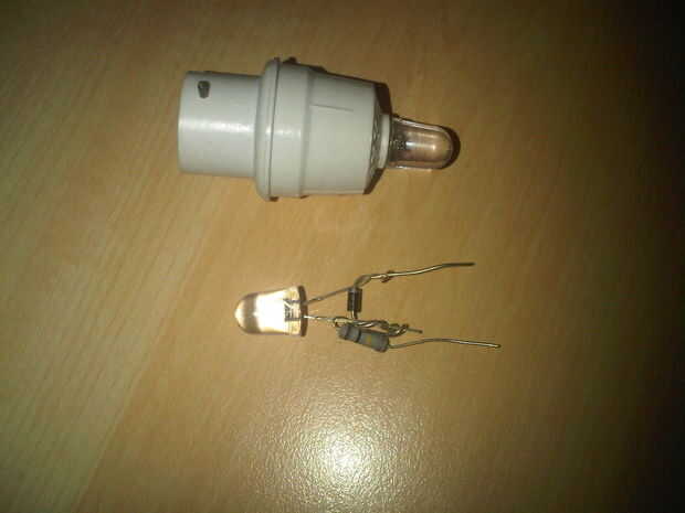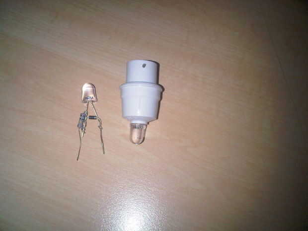 3. a continuación, conecte el positivo del diodo al positivo del LED, pero tan bajo como sea posible hacia la punta de la pierna.