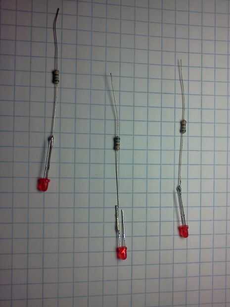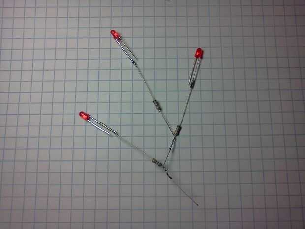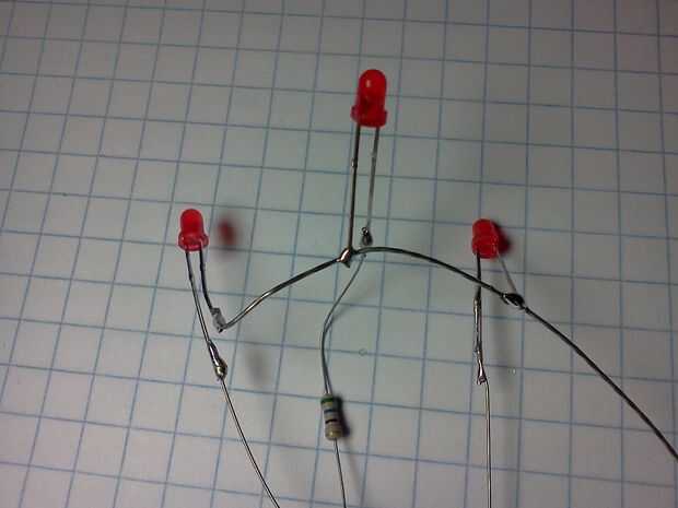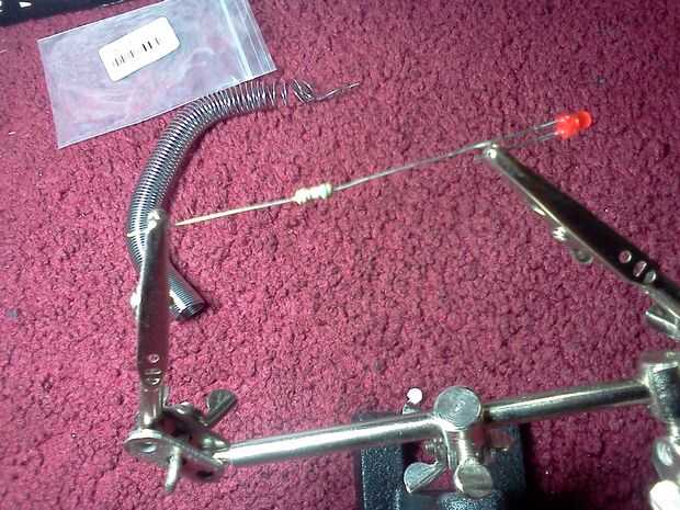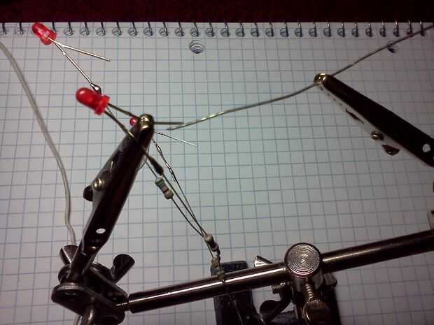 Sacar dos de tus LEDs con cable y envuelva la parte inferior de una resistencia a la otra.