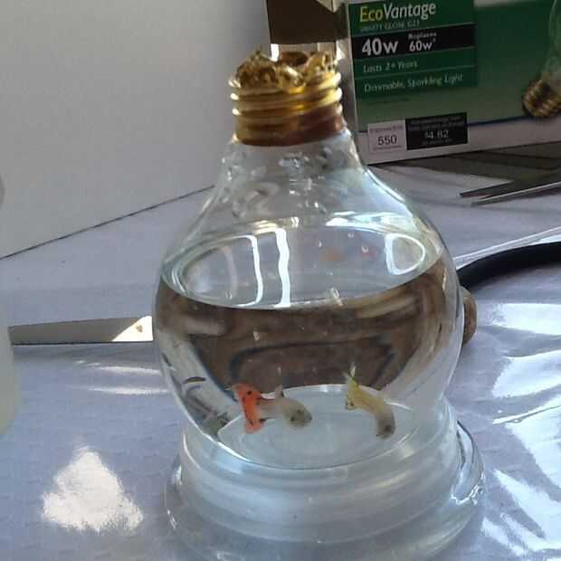 Después de limpiar la bombilla corte el fondo de la bolsa y vierte los peces en el bulbo con el agua llegaban.