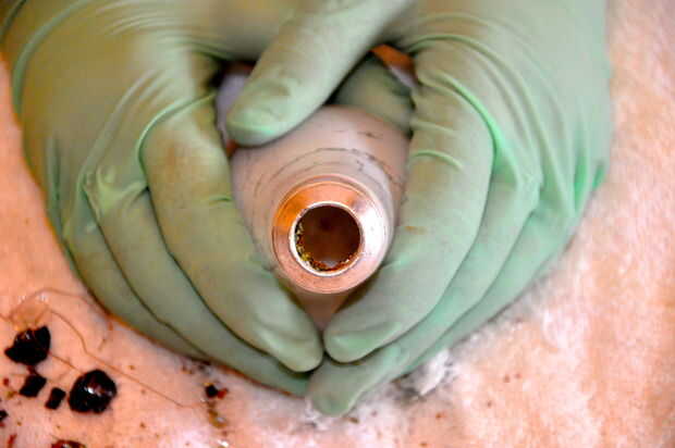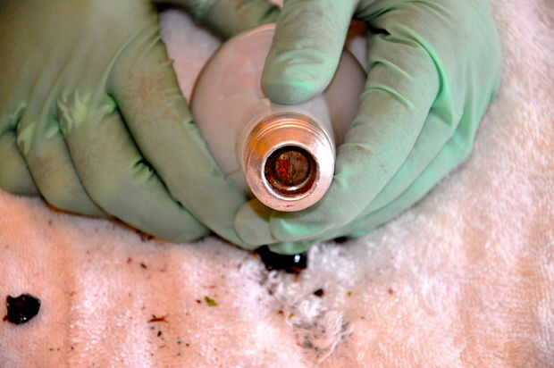 - Utilice el destornillador de cabeza plana para romper el aislante de vidrio que lleva en el tubo de escape.